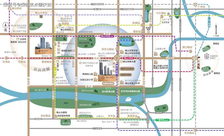 禅城的湾华站TOD综合体将以“轨道+物业产业”为开发理念,以地铁2号线与3号线交汇点[湾华站]为支点延展至整个湾华片区,探索地上地下站城一体化模式,通过地铁串联全城,带来巨大的人流和资金流,板块价值随之腾飞。
