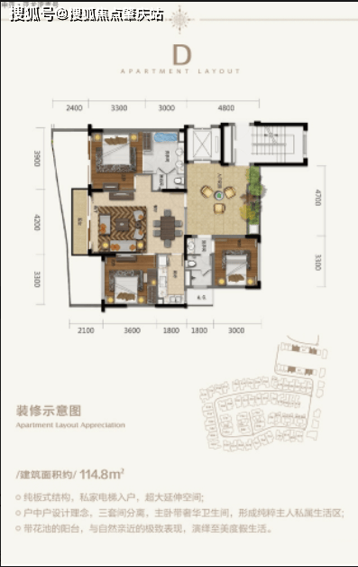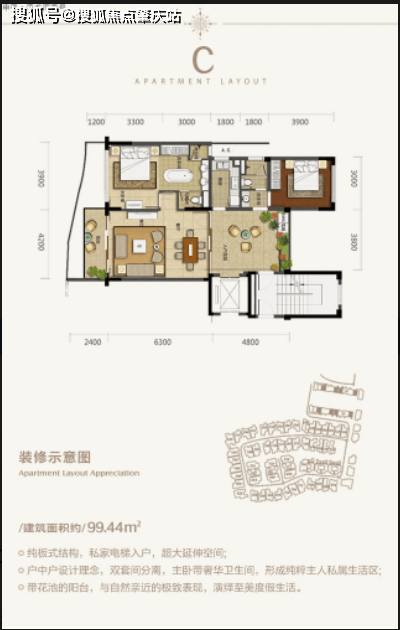 设计理念独特:采用园中园、院中院、户中户设计理念,花园下沉,泳池上浮,高低错落,超大地下面积赠送,高得房率。