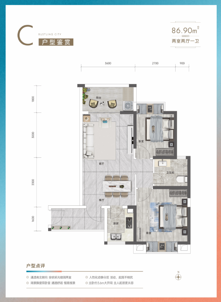 3⃣南北通透布局:通透南北朝向,构建全明生活空间
