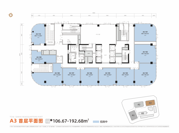 当前北区建面约328-348㎡ 5A办公空间、105-429㎡ 中央商务金铺,现房在售、同步招商