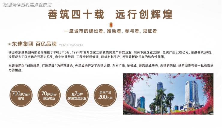 【天赋品牌 40载实力筑家】——东建集团,致力成为佛山最具价值的城市综合服务商,40年来累计开发了700多万㎡住宅和70多万㎡商业物业,筑就超过7万户家庭安居乐业,总资产规模超200亿。