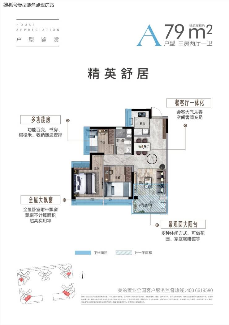 ■ 约83㎡三房两厅一卫 灵动空间设计,广阔观景视野 客餐厅一体化布局,直通大景观阳台 主次卧宽景大飘窗,品质生活悠然自得