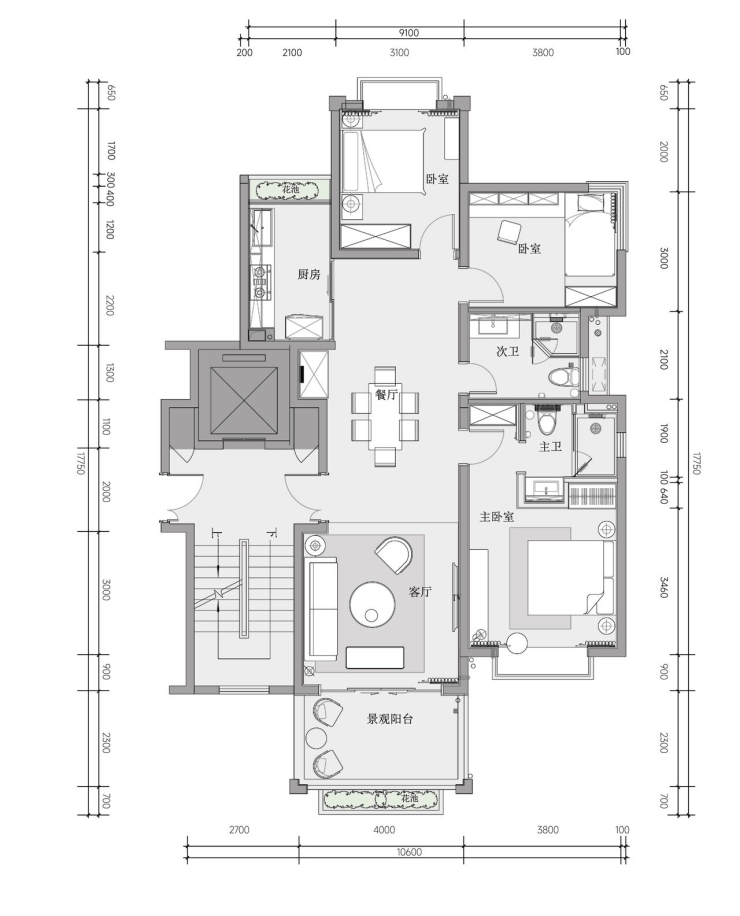 主客卫干湿分离,布局合理,随心从容起居。
