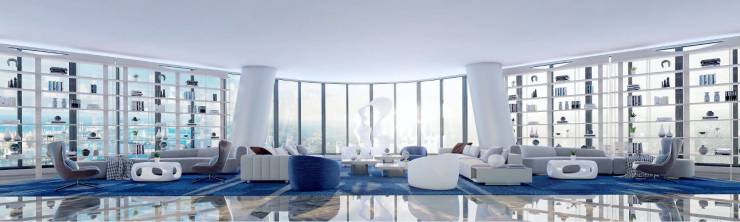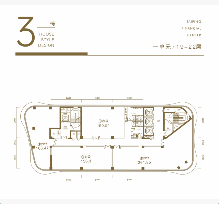 太平金融产业港三栋建筑面向海岸线的布局,以及内部所有空间布局,均为100m²以上空间,配合大采光面270度转角,非核心筒建筑结构等,这样的设计可以让室内的采光及办公舒适度将会更强,同时空间极其开阔敞亮。