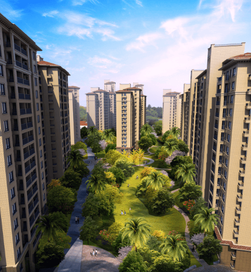景观配套:社区入口景观/风情度假泳池/儿童主题乐园/优选架空层/雅致入户空间/中轴景观/阳光草坪/情景雕塑/景观植物/时尚商业生活街区;