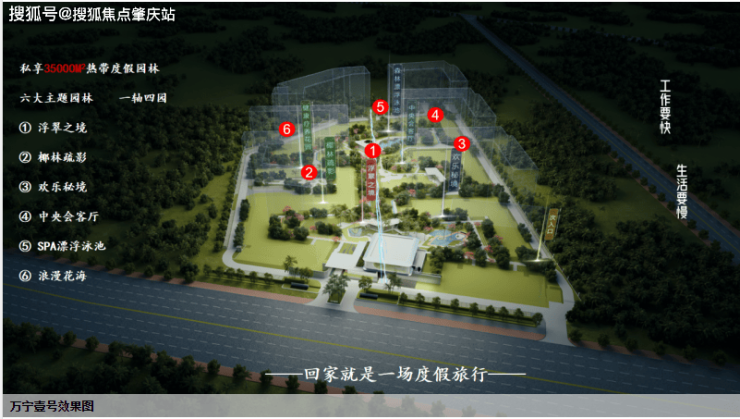 内部配套:社区内有 3.5 万平方米景观园林,采用一轴三园设计,有 6500㎡中央景观区、4500㎡社区景观会客厅、2000㎡椰林花海、200 米景观大道,还设有 SPA 漂浮游泳池、夜光跑道、网球场、业主食堂、全龄活动区、中央客厅等。