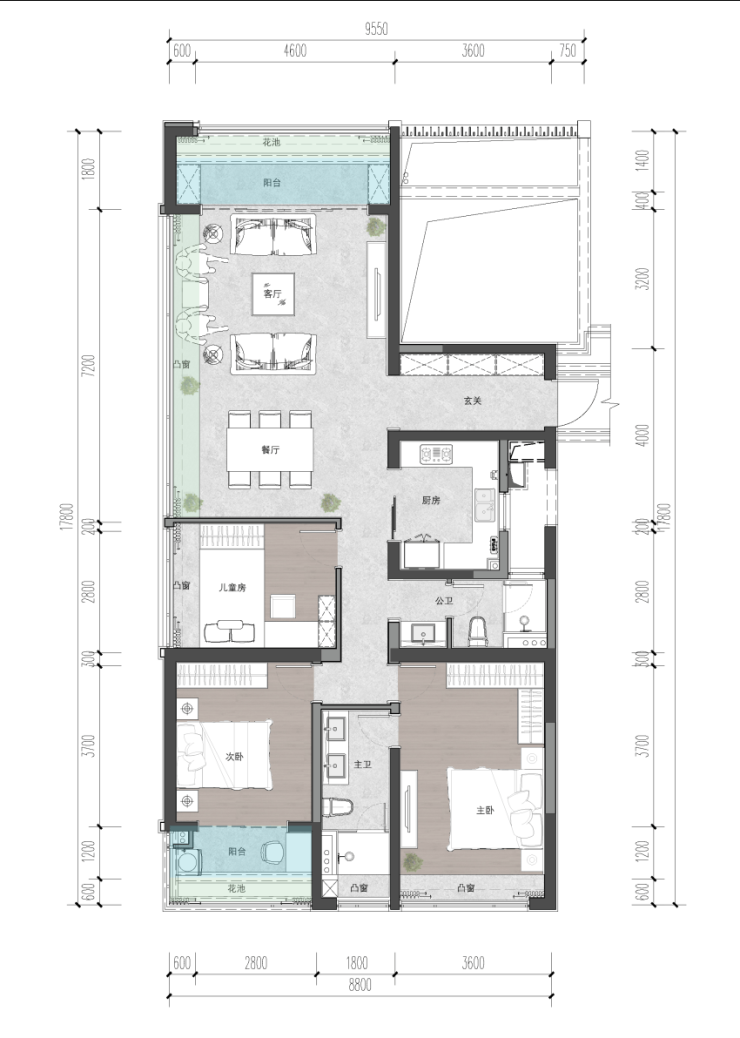 C户型 144㎡三房两厅两卫