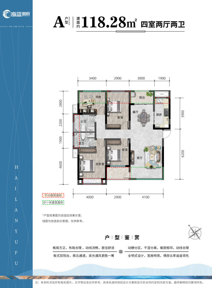 A户型:南北通透,宽面全景双阳台