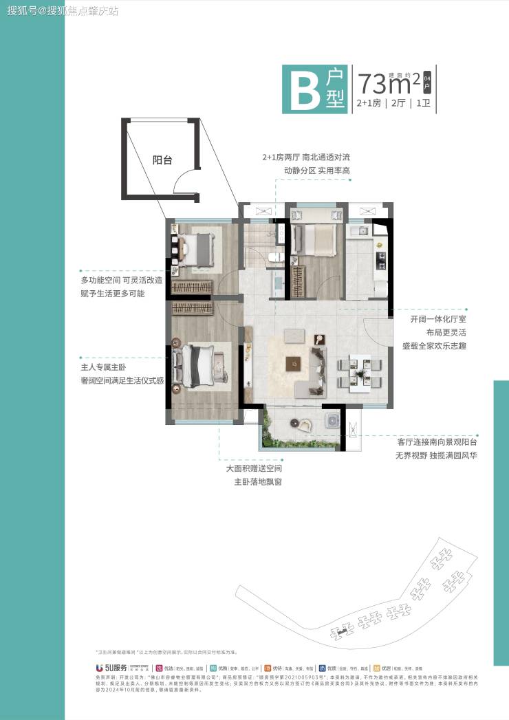 宽尺南北通厅,客厅连通北向景观阳台,敞亮开阔