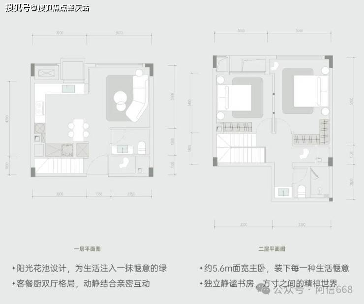 下叠:使用面积约 210㎡,拥有三室四厅三卫一庭院。入户庭院直通卧室,让业主一回家就能感受到大自然的气息,庭院还可栽种花草,打造属于自己的小花园。室内空间布局合理,客餐厨双厅格局,动静结合,既能保证家人之间的亲密互动,又能有各自独立的空间。