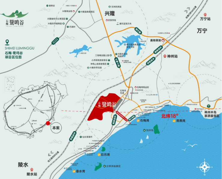 项目临近海南环岛高速石梅互通,距离美兰国际机场130公里,驾车约1小时;距三亚凤凰机场98公里,驾车约40分钟;距博鳌国际机场54公里,驾车约20分钟;距神州站9公里,驾车约10分钟;距万宁站22公里,驾车约23分钟,拥享3小时全岛便捷交通圈。