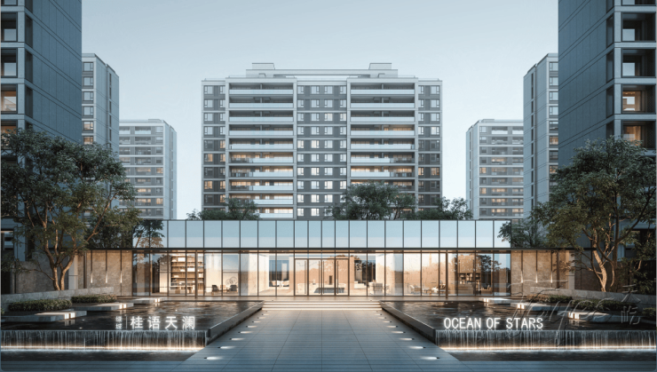 桂语天澜项目在外立面设计上综合考量现代建筑美学、国际化风格以及高效利用资源方面因素,引入更加简洁的公建化风格,结合从容优雅的“高级灰调”国际审美、打造出轻盈现代、历久弥新的楼栋立面。