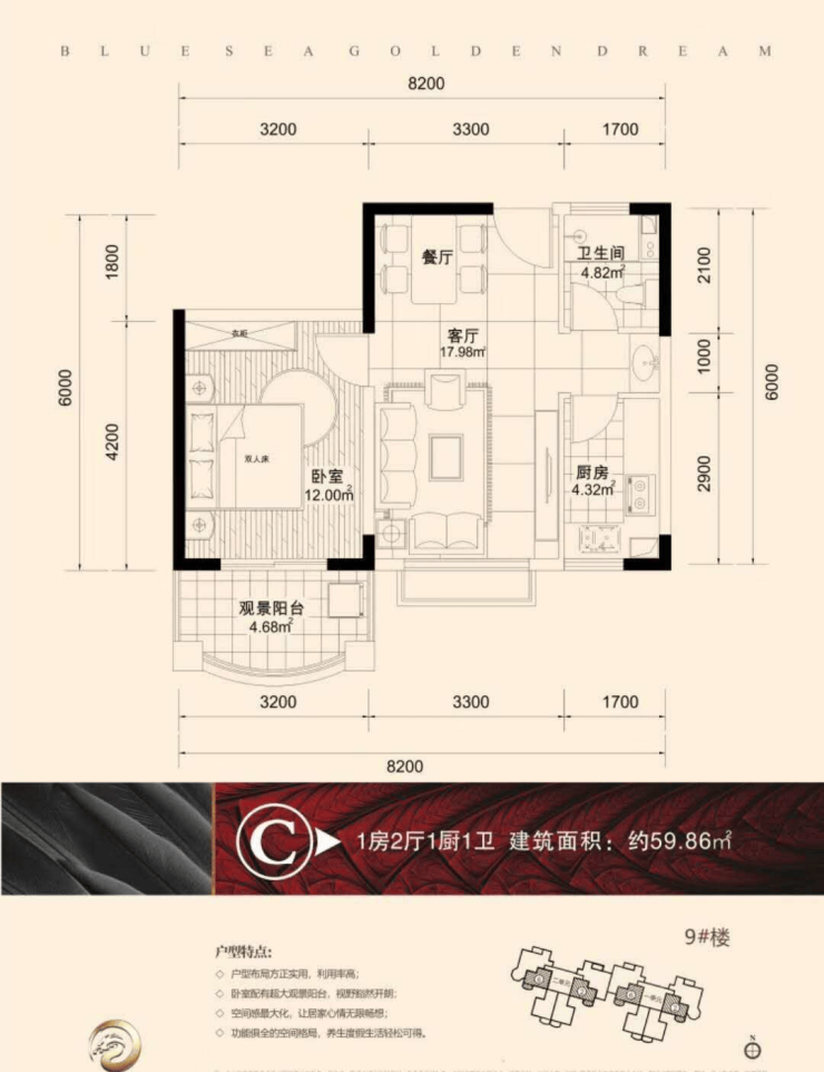 🏡 在售9号楼面积:59㎡一房,98㎡三房