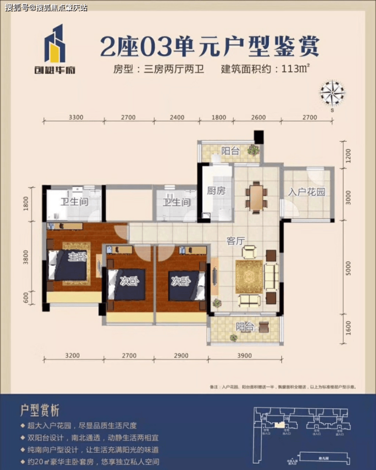 户户赠送超10㎡实用率超高三四房,户户南北对流百米楼距,180°北江新区全景楼王,三水绝版3.3米层高绝版户型,户户赠送12㎡面积,真正的繁华中心最佳改善明星产品!
