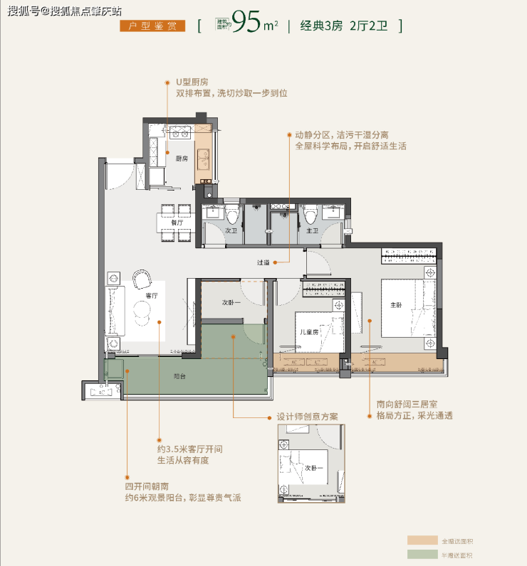 户型一【95㎡经典2+1房2厅2卫】