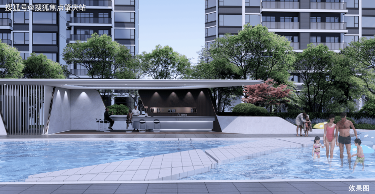 三重递进式全龄段园林——中央会客厅、邻里花园、健身区、阳光草坪、颐养花园,童趣乐园,游泳池。全季、全时、全龄、全景的阳光园林。