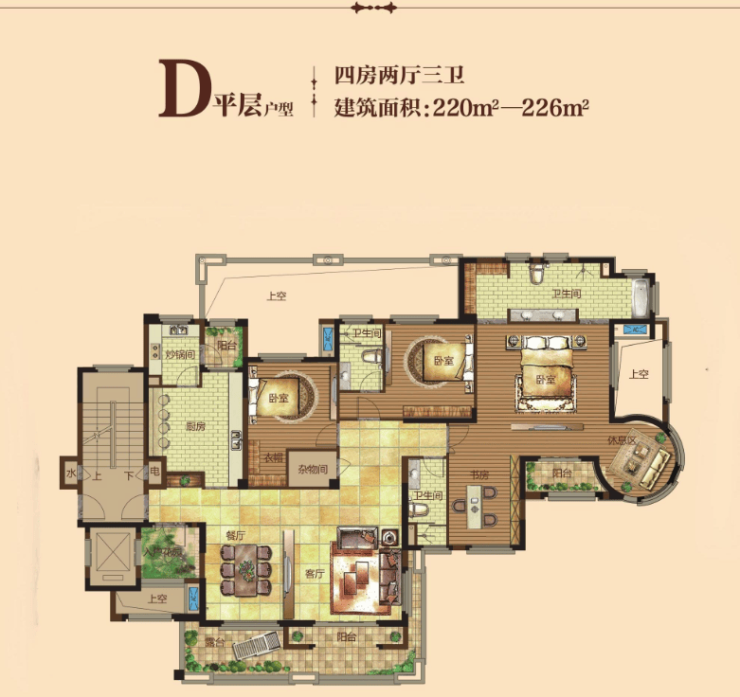 40-302大平层 226.3㎡四房三卫
