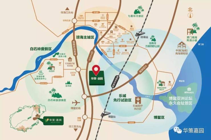 华策·嘉园项目毗邻博鳌镇,距离博鳌亚洲论坛30分钟车程,共享世界盛会。