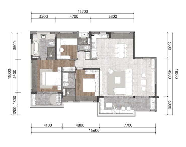 ●百变横厅奢阔尺度 ●南向双套房卧室