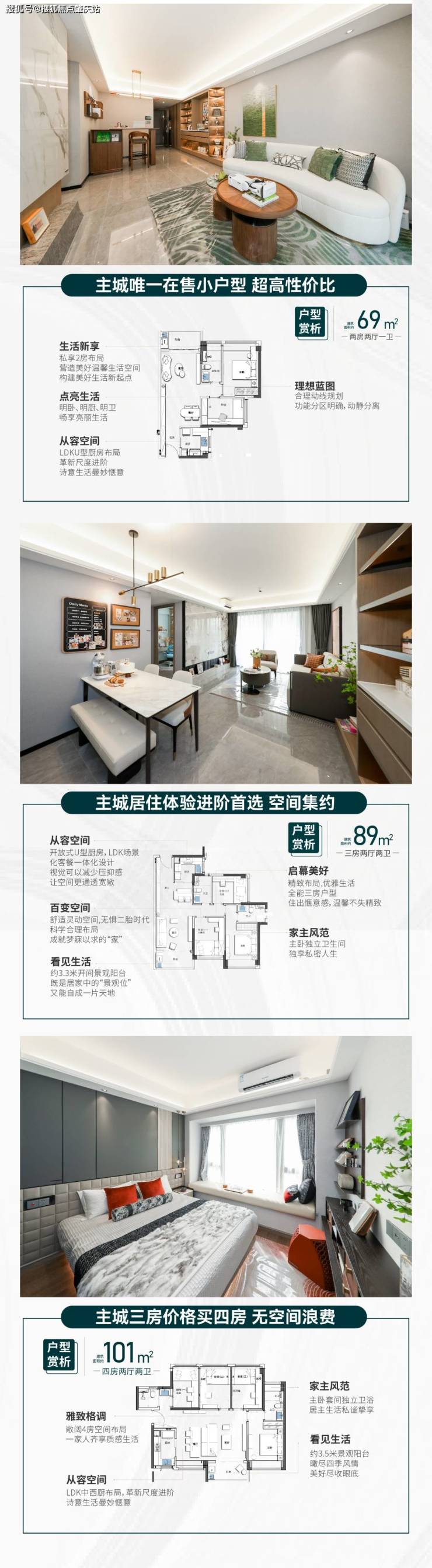 在售户型:69m2房2卫、89m3房2卫、101m4房2卫