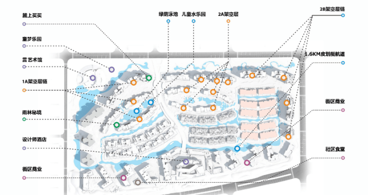 🌊度假生活:绿荫泳池、皮划艇航道、水音亭
