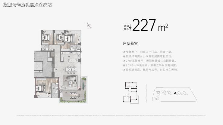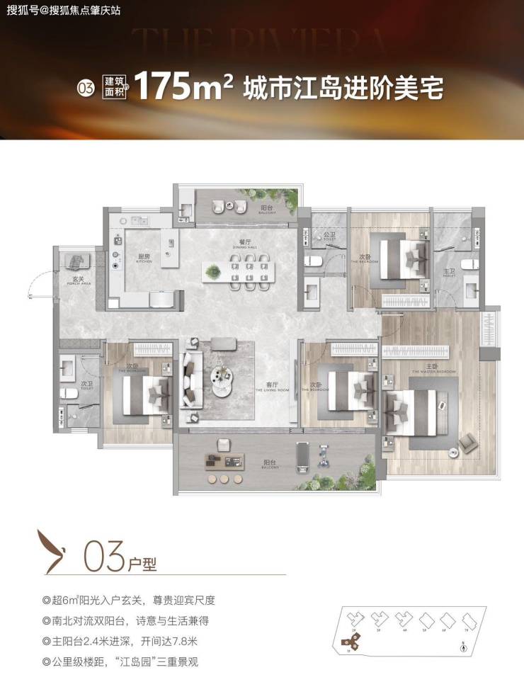 03户型 建筑面积约172㎡灵活尺度大平层客餐厅对流,客厅无剪力墙可拓展达到70㎡墅级L型迎客玄关,尊贵入户礼遇东平河最美「江+岛」景观餐厅