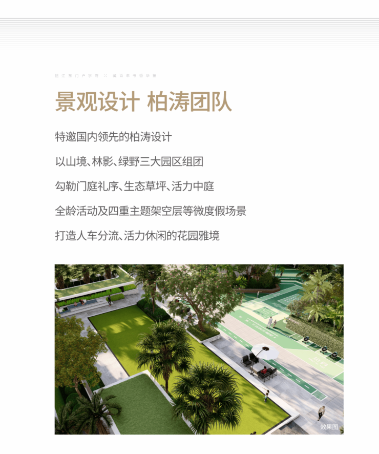 6. 全龄景观社区:柏涛团队设计三大景观组团,绿化率25.1%,配儿童区、环形跑道及主题泛会所。