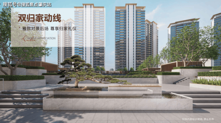 社区共有南北两个气派尺度入口,让业主无论从南北哪个入口归家都可以享受同样的园林中轴,体验一个不一样的归家礼仪。