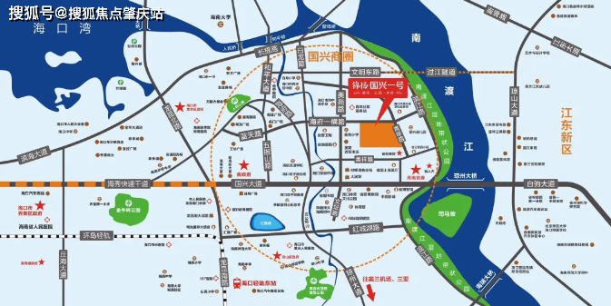 交通出行:占据国兴商圈,连接海秀快速干道,距离海文高速入口 3.5 公里,距城东 G98 东西高速入口、海秀高铁东站 6 公里,距府城 4 公里,国贸 6 公里,海甸岛 6.6 公里,江东新区 11 公里,美兰国际机场 17 公里。