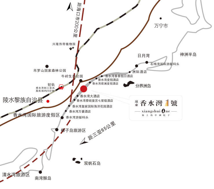 位于海南三亚往东65公里的著名热带滨海旅游度假圣地——珍珠海岸,紧邻东线高速500米,可选择乘坐大巴和高铁等交通工具到达三亚,交通十分快速便捷;项目处热带与亚热带分界线,背靠牛岭山脉,面向浩瀚的中国南海,雄踞中国最美海岸线。