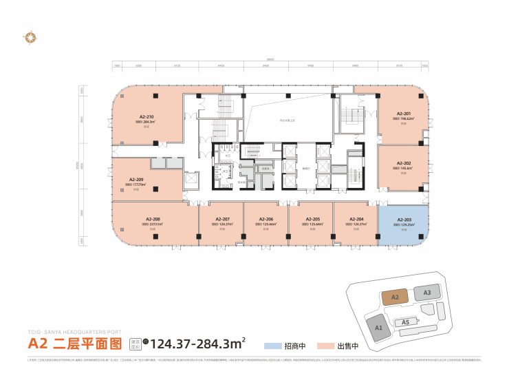 当前北区建面约328-348㎡ 5A办公空间、105-429㎡ 中央商务金铺,现房在售、同步招商