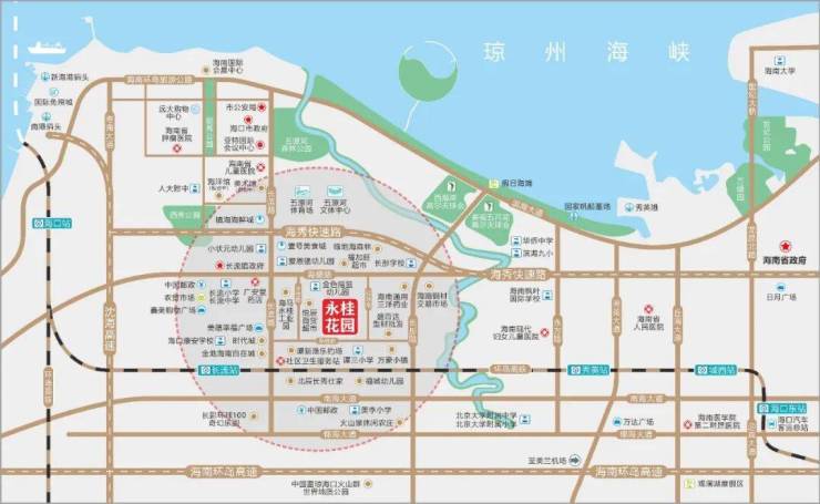 以项目为坐标,周边环拥从幼儿园到高中的全龄段教育体系,约1公里内毗邻多所幼儿园、距长流中学不到1.5公里,3公里以内有康安学校和长彤学校,此外还有传桂小学,长滨小学、人大附中学海口实验学校等优质教育,学府相伴书香涵养,让孩子未来蓝图更清晰。