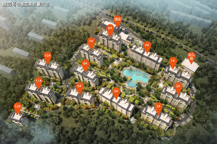 楼栋总数:10 栋 11 层洋房,2 栋 8 层洋房,1 栋 6 层酒店,1 栋 2 层幼儿园。
