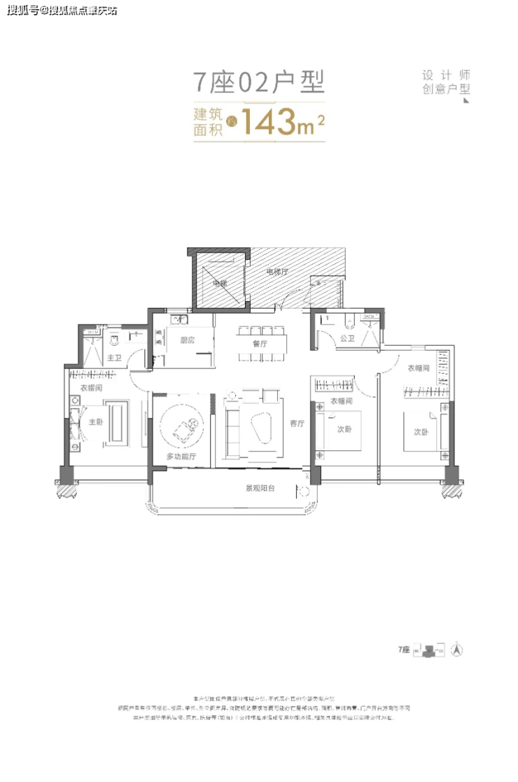 7座0户型 建面约143㎡丨专梯专户,纯板楼5开间朝南