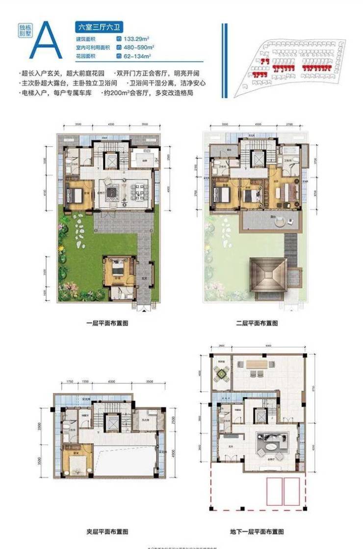 别墅:约133—239㎡三期新品独栋,精装交付