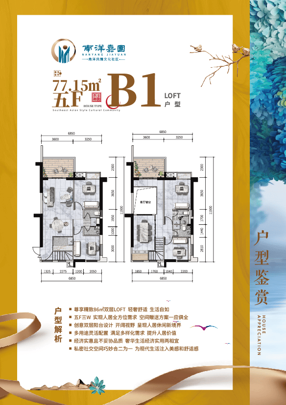 🏠 B1户型 LOFT 约77㎡ 五室两厅三卫