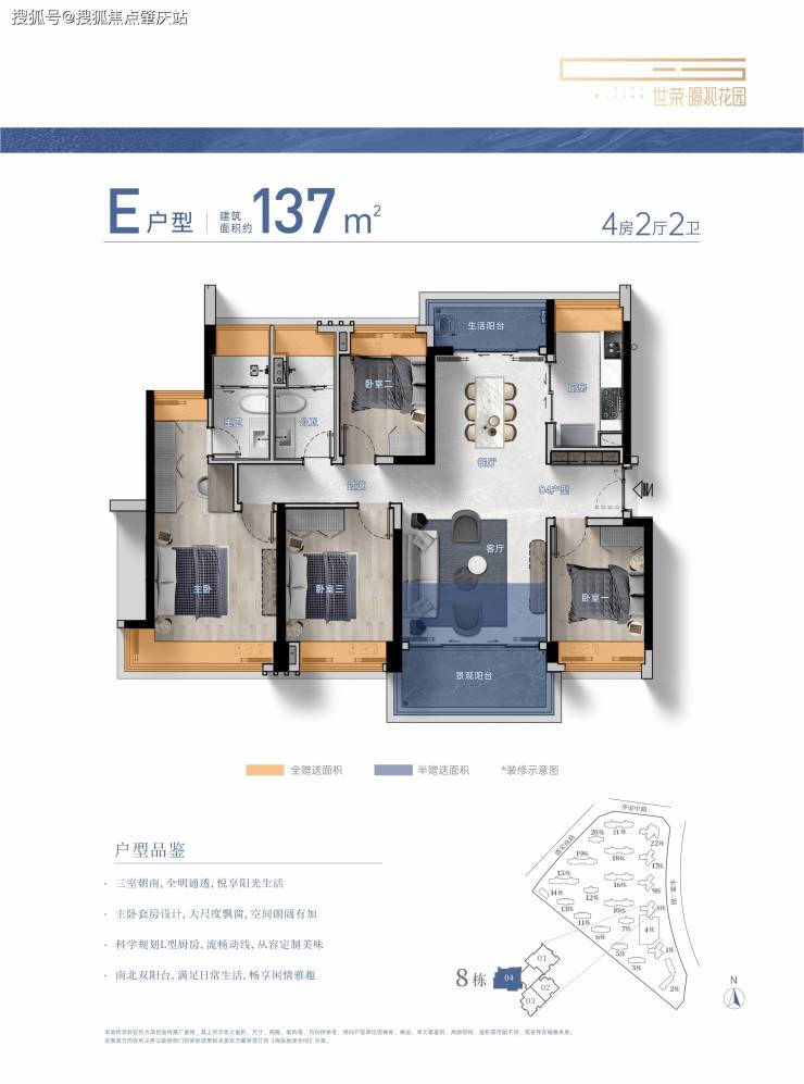 建筑面积约104-229㎡3-4房美学平层,着落其间