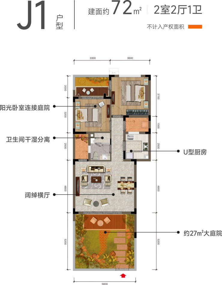 2、约13.8㎡入户花园:宽敞庭院,归家与自然相遇