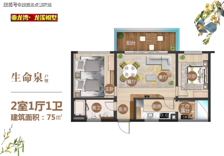 G1 户型鹭台洋房:两房两厅两卫,建筑面积 110㎡,户户有私家露台,可揽尽红树林美景。