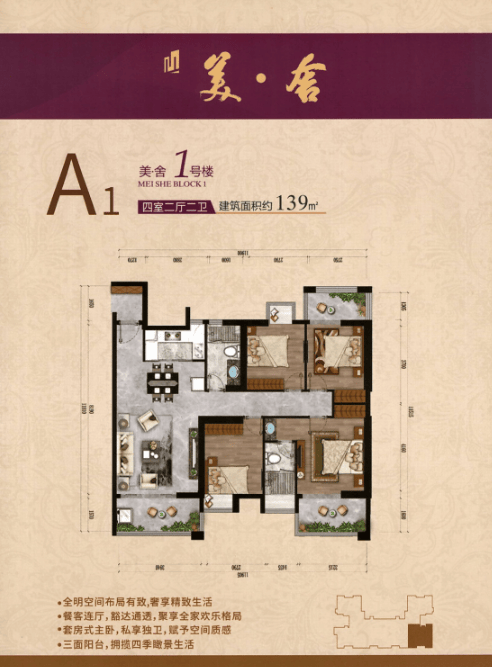 -A1户型 四室两厅两卫+三阳台