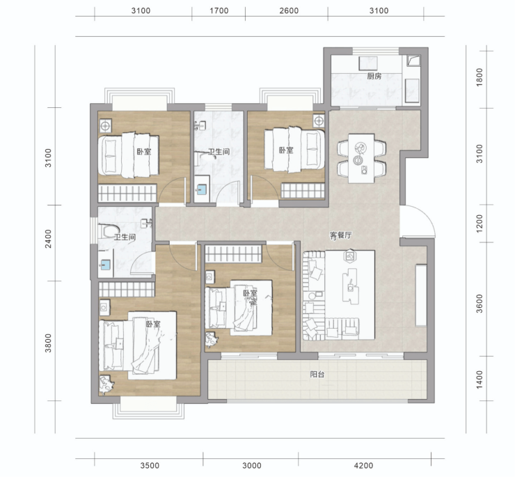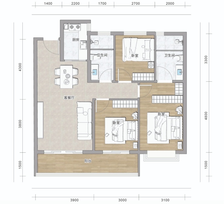 ◎舒适布局:客餐厨等动区,与卧室等静区分离,避免互相干扰