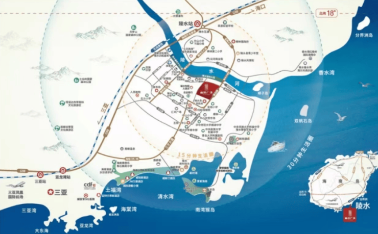 【绝佳地理位置】坐拥“三湾三岛一山一水”,北纬18°以南的“珍珠海岸美丽陵水”