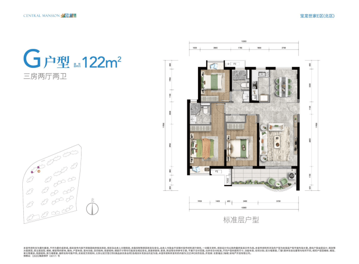 建筑面积约110-122㎡三房两厅两卫,通透板楼,奢尺景观大阳台,方正格局,空间实用;主卧套房,全明厨卫,舒享惬意生活。