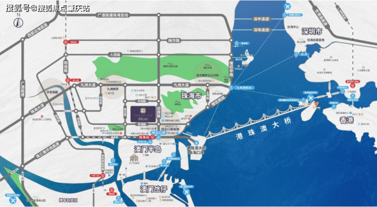 观宸246,位居拱北口岸头排,珠澳同城核心板块,城市中心+口岸物业双极加持,近10年来距离拱北口岸、港珠澳大桥口岸最近的纯住新盘,左手澳门世界级休闲娱乐配套,右手拱北城市烟火生活,坐享醇熟配套,畅享港珠澳三城无界生活。