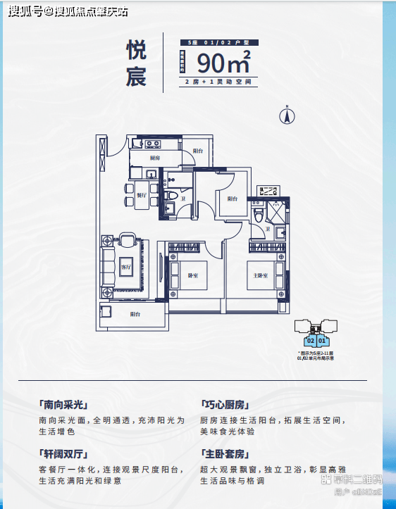 十二、【一字楼布局,构筑健康舒居】 无遮挡一字楼,南北朝向,户户观景。 ——{ 户型鉴赏 }—— 高拓展N+1户型,同样的面积,多一房空间 房型方正,客餐厅合理布局,整屋分而不离 南北通透,全明户型,四时有光,推窗即景 三室朝南,大横厅设计,连接超大景观阳台 私密主卧独立卫浴,设瞰景飘窗,大面宽采光