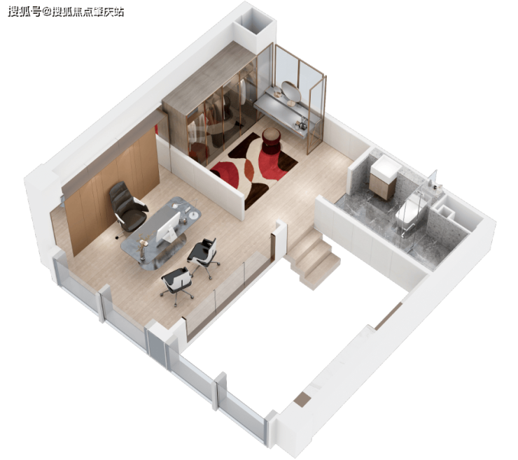 产品设计:主推205-1525㎡商务空间,采用全玻璃幕墙外立面,配备独立电梯厅、空中花园及共享会议室。