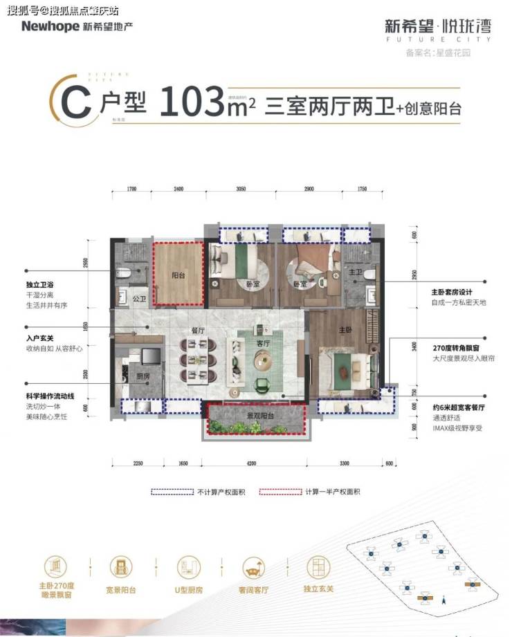片区没有低于90方的南向3房,新希望悦珑湾有。