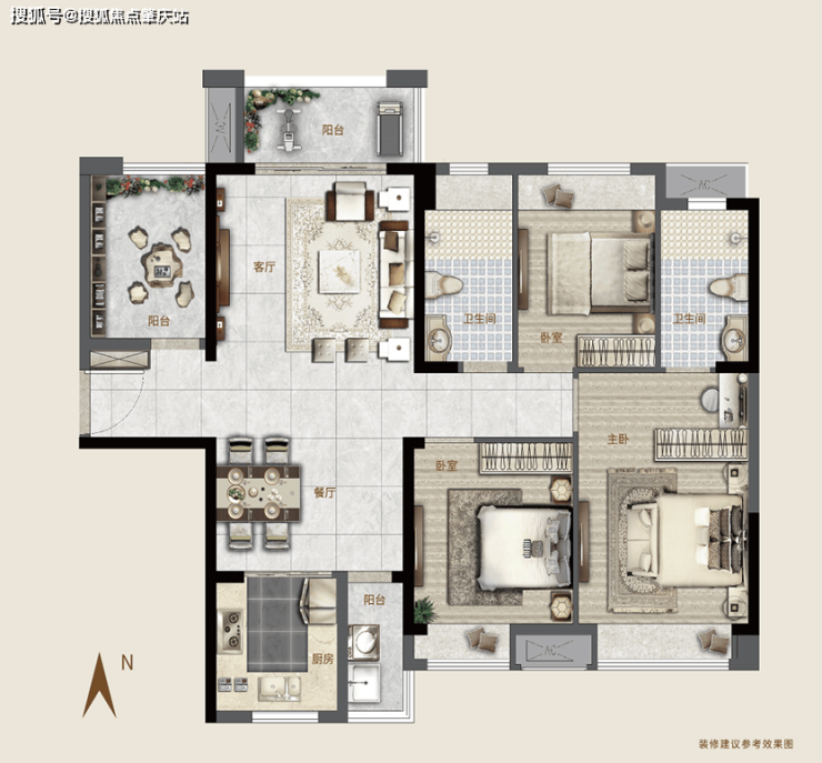 精致三房,灵活多变自由布局扩大家庭空间交流