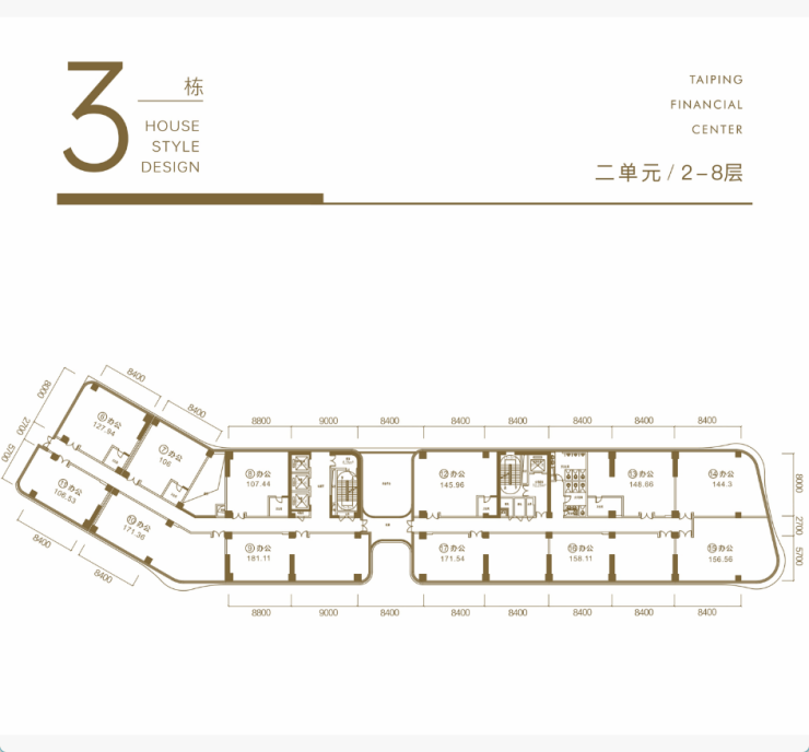 星级空间——8米大开间,6米短进深,进一步扩大空间感,非核心筒建筑形态,空间梁柱少。