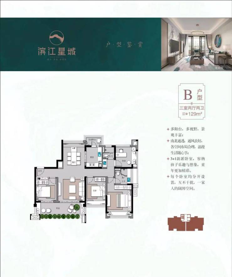 产品面积:110-129㎡三房两厅 板式大宅